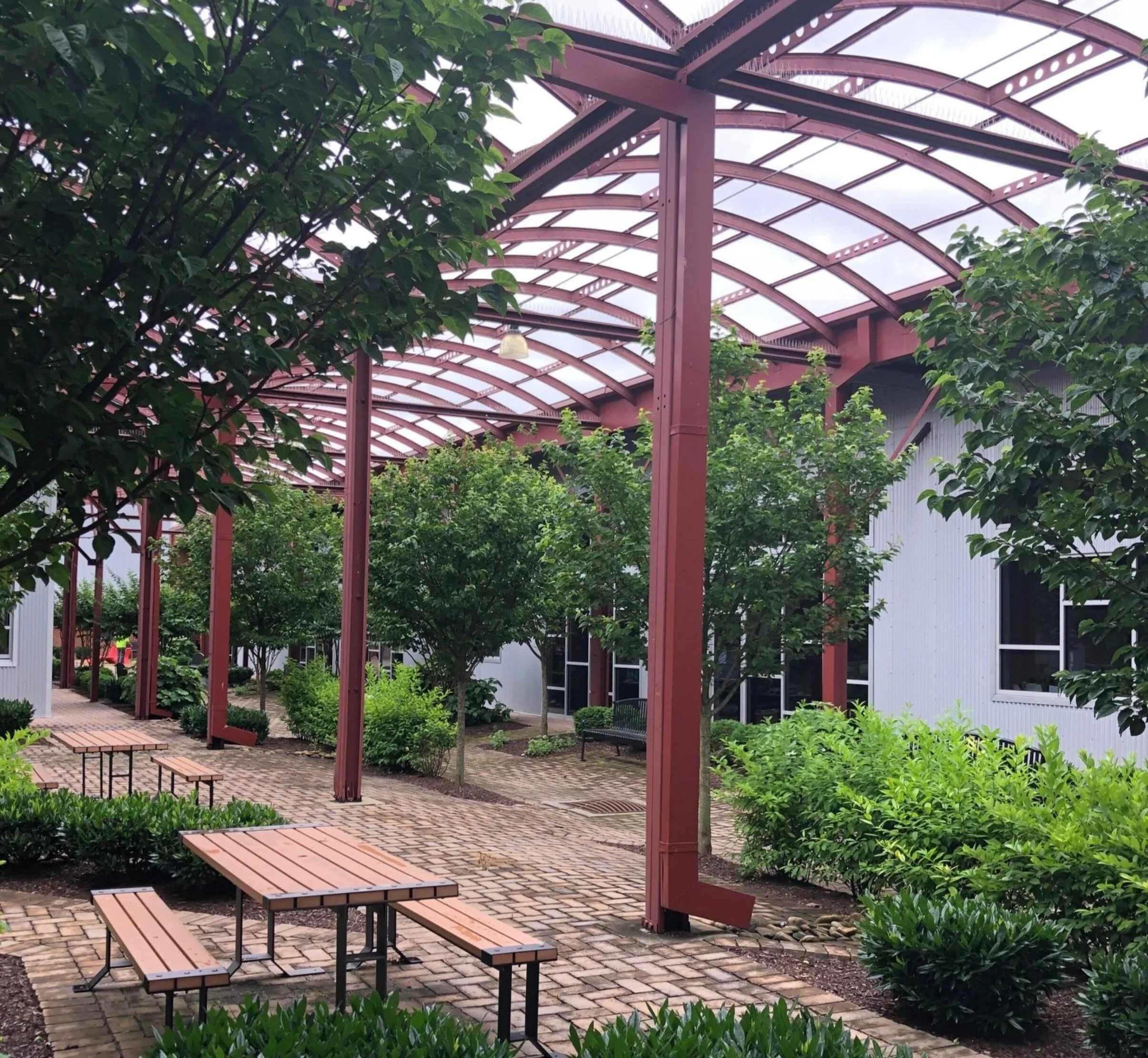 Converted Existing Quonset hut building into office and courtyard spaces with existing structure remaining.
